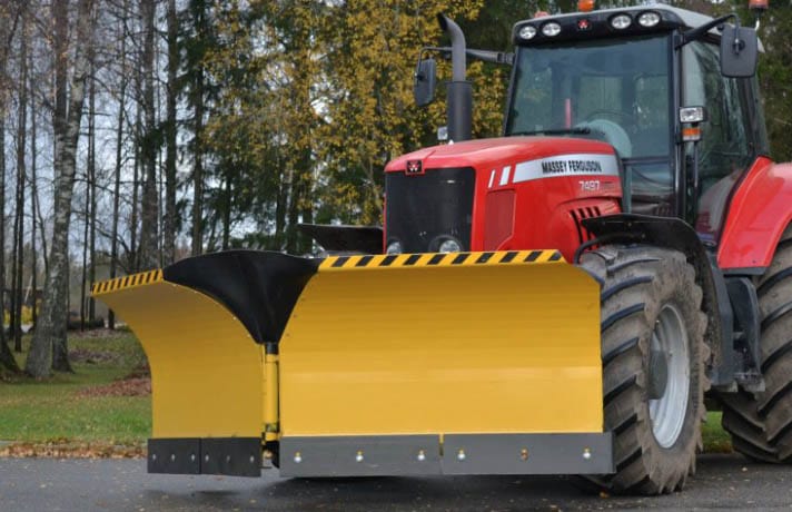 Powerful V-plows for tractors ensure quick and wide snow removal. Hydraulic control and adjustable wings make the work efficient. Strong construction is suitable for professional snow clearing.